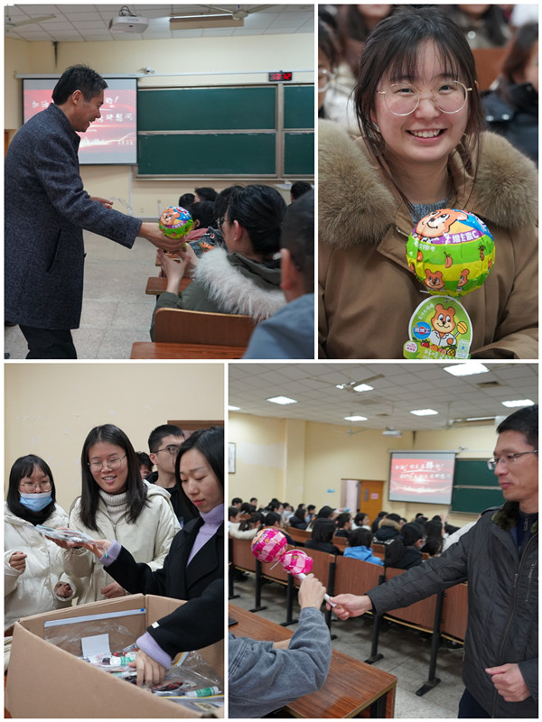 首先,陳海群對(duì)正在備戰(zhàn)考研的學(xué)子們表達(dá)了慰問、鼓勵(lì)、期望之情:希望同學(xué)們保持樂觀的心態(tài)、注意身體健康、明確考研目標(biāo)、積極備戰(zhàn)考研。接著,吳荷平叮囑大家平衡好考研壓力,把生活、學(xué)習(xí)規(guī)律調(diào)整到位,全力沖刺,發(fā)揮出自己最好的水平。而后,繆老師通過“青春是用來拼搏的,夢(mèng)想是用來實(shí)現(xiàn)的,圓夢(mèng)考研你們是最棒的!”來鼓勵(lì)大家考研加油。院領(lǐng)導(dǎo)表示學(xué)院是所有考研同學(xué)的堅(jiān)強(qiáng)后盾,會(huì)努力為大家提供良好的考研條件,并祝愿大家金榜題名,考上理想院校。最后,學(xué)院還為考研學(xué)子們發(fā)放了“最棒”棒棒糖、“考霸”文具袋,希望同學(xué)們堅(jiān)定信念,全力沖刺,蟾宮折桂,舍我其誰!