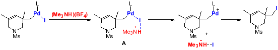研究發(fā)現(xiàn),便宜易得的三乙胺四氟硼酸鹽(Et3NH)(BF4)作為氫鍵給體,可以和C(sp3)-PdII-I形成氫鍵加和物A。氫鍵的形成削弱了PdII-I鍵,有效促進(jìn)碘負(fù)離配體的配位解離,使得還原消除的反應(yīng)能壘大大降低,最終在保持高效率的同時可以使反應(yīng)溫度降至60度。