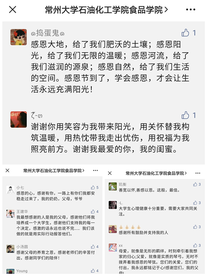 5月12日至16日期間,開展“感謝有你”主題活動(dòng)。同學(xué)們通過班級(jí)團(tuán)建歌唱感恩歌曲,觀看感恩影片,以及在官微下方評(píng)論的活動(dòng),學(xué)會(huì)感恩他人,感恩自己,感恩社會(huì),讓生活變得向上而又多彩。