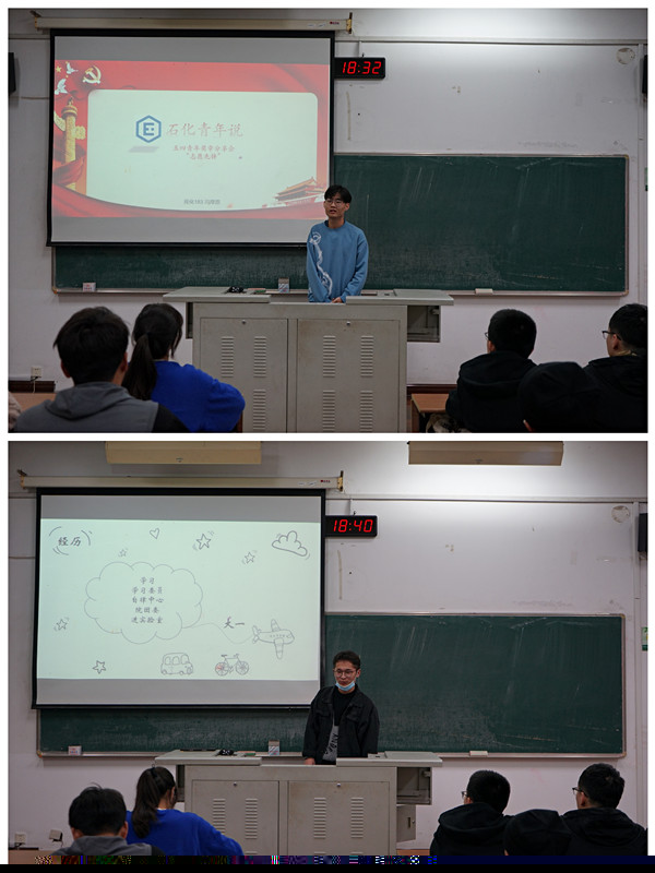 為展示新時代青年“聽黨指揮、矢志奮斗”的精神面貌,培養(yǎng)同學(xué)們“開拓進(jìn)取、積極向上”的品質(zhì),11月16日18:30,我院在w1202開展石化青年說之五四獎?wù)路窒頃?。本次分享會由自?qiáng)先鋒于威風(fēng)、志愿先鋒馮厚恩、創(chuàng)新先鋒王泳丹、團(tuán)建先鋒許涵僑主講。