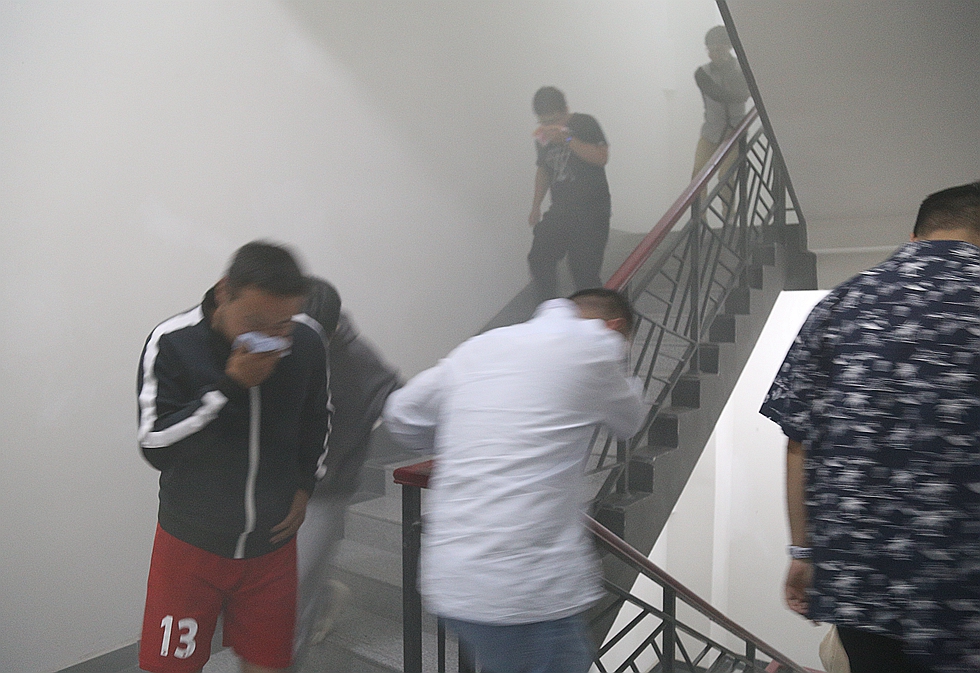 黃海老師作動員發(fā)言,提醒師生要學(xué)習(xí)掌握消防應(yīng)急知識,排查消防安全隱患,切實落實消防安全主體責(zé)任;消防安全專業(yè)人員給大家詳細(xì)講解了火災(zāi)發(fā)生的危害、火患發(fā)生時的應(yīng)急處置、常見初期火災(zāi)撲救技巧、火場逃生方法及注意事項等消防安全知識;培訓(xùn)結(jié)束后,與會師生進(jìn)行了現(xiàn)場演練活動,老師和同學(xué)們在工作人員的指揮下,快速撤離煙霧地點,沿著指定樓梯通道到安全地帶,順利完成了應(yīng)急疏散逃生演練;疏散到指定地點后,老師同學(xué)們按照滅火的正確步驟和方法,將燃起濃煙的大火迅速撲滅,通過實踐掌握了日常消防器具的操作要領(lǐng)。