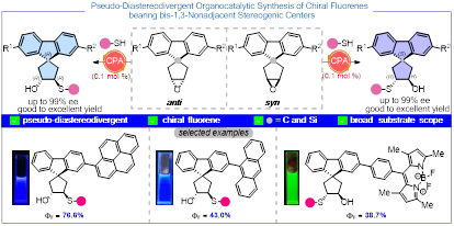 Pseudo-Diastereodivergent Synthesis of Chiral Fluorenes BearingBis-1,3-Nonadjacent Stereogenic Centers via OrganocatalyticDesymmetrization of meso-Epoxides