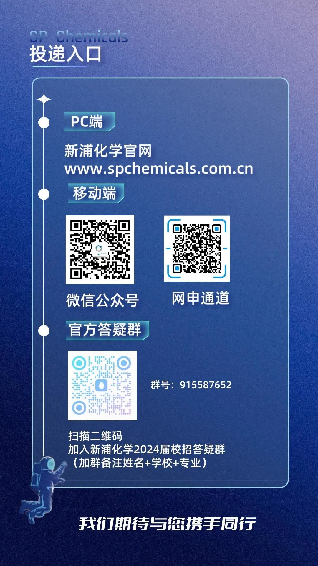 請(qǐng)將個(gè)人簡(jiǎn)歷發(fā)送至:zhaopin@spchemicals.com。更多詳細(xì)信息請(qǐng)?jiān)L問(wèn)我們的官方網(wǎng)站:https://www.spchemicals.com.cn/或關(guān)注新浦化學(xué)公眾號(hào)。