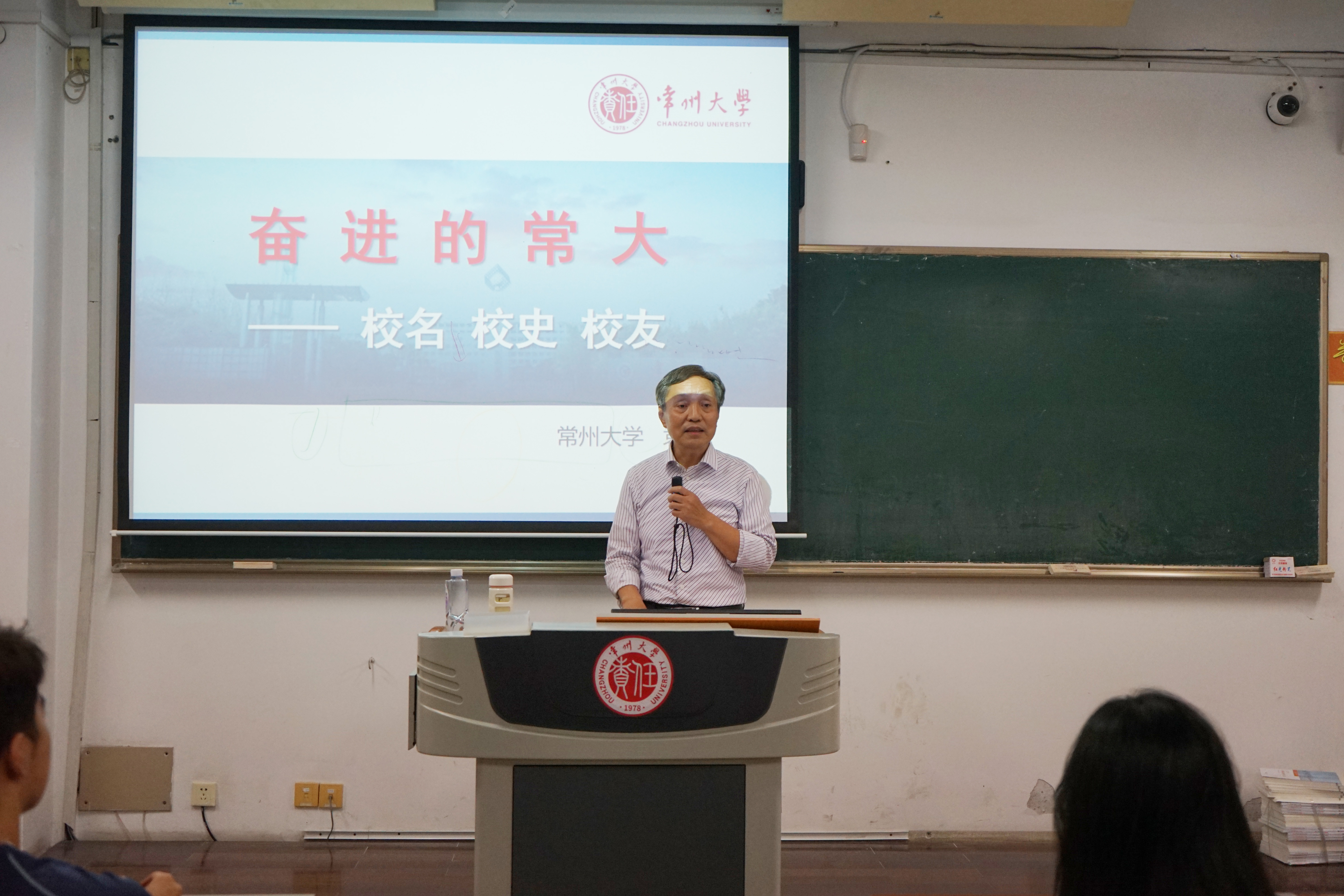 袁能以常州大學(xué)首屆畢業(yè)生的身份,結(jié)合各階段的歷史背景,用一張張承載常大記憶的照片,帶領(lǐng)同學(xué)們回顧了我校45年來(lái)的發(fā)展歷程、成長(zhǎng)故事、所獲榮譽(yù)、為黨和國(guó)家做出的重要貢獻(xiàn)。報(bào)告最后,他用一篇以"青春,夢(mèng)想,未來(lái)"為題的文章勉勵(lì)同學(xué)們,期望他們能夠心懷夢(mèng)想、腳踏實(shí)地、積極作為,深刻理解前輩們?yōu)槌4蟀l(fā)展做出的卓越貢獻(xiàn),承擔(dān)起這一代人應(yīng)有的責(zé)任。