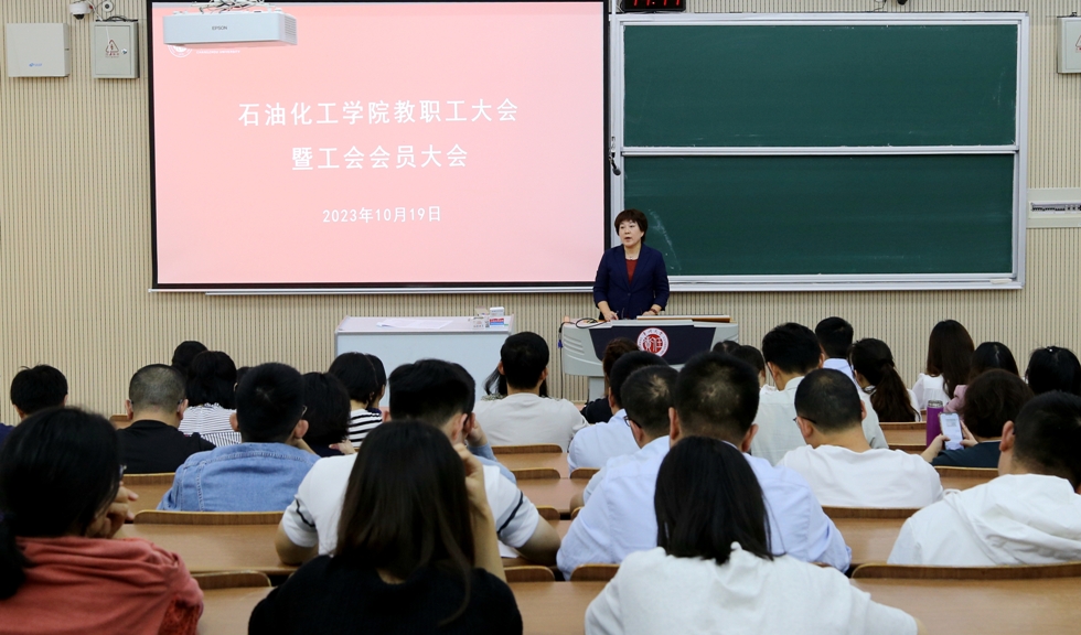 2023年10月19日下午,石油化工學院在教學樓W9階召開2023年教職工大會暨學院工會會員大會,學院黨政領(lǐng)導、分工會主席以及全體教職工參加會議,黨委副書記劉茂燦主持會議。