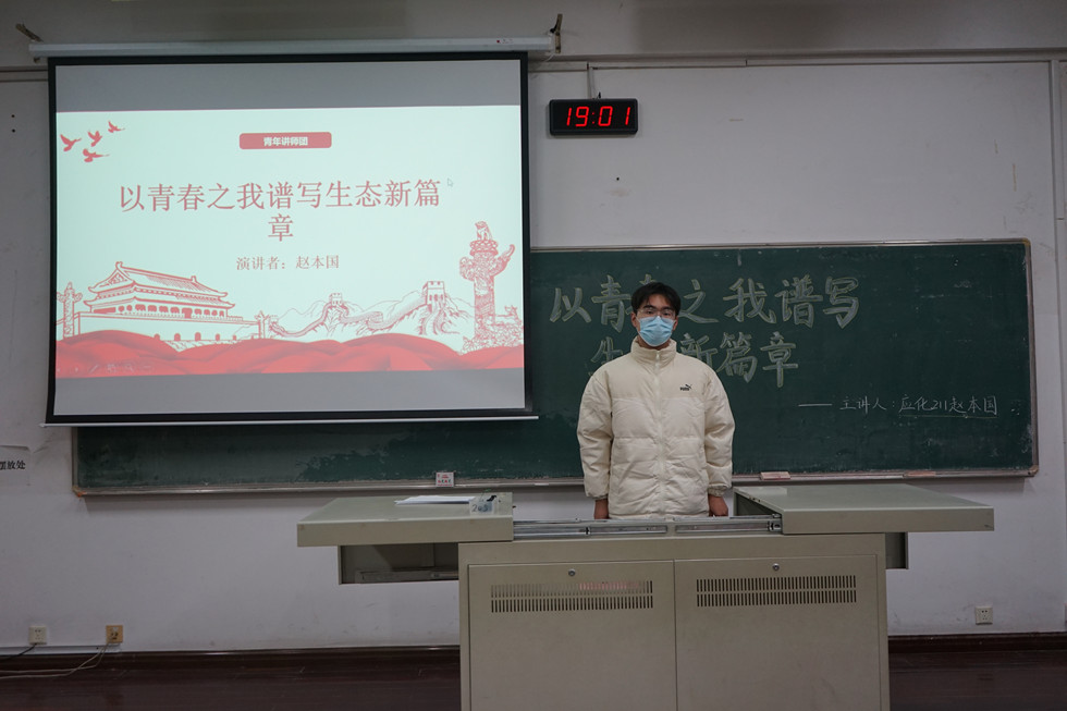 為深入學(xué)習(xí)貫徹黨的二十大精神,牢固樹立和踐行綠水青山就是金山銀山的理念,強(qiáng)化大學(xué)生生態(tài)文明意識,我院于12月5日在W1205舉辦“青年講師團(tuán)”系列講座——以青春之我譜寫生態(tài)新篇章。講座由本科生第一學(xué)生黨支部黨員趙本國主講,各年級學(xué)生代表參加。