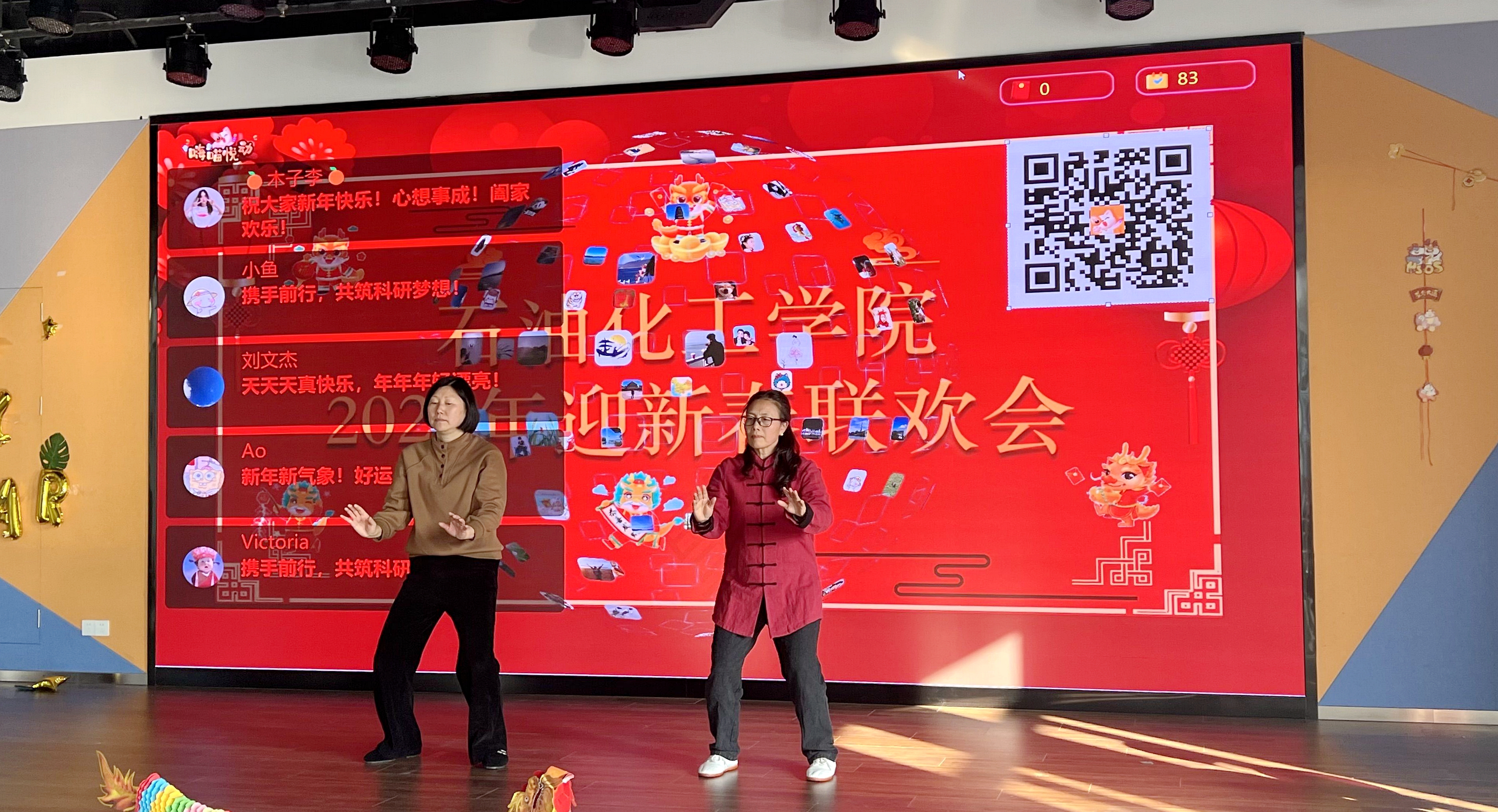 聯(lián)歡會(huì)現(xiàn)場(chǎng)節(jié)目形式多樣,精彩豐呈,節(jié)目或歡快、或溫馨、或活潑,展現(xiàn)了學(xué)院教職工多才多藝的一面,以及對(duì)教育事業(yè)的熱愛和新年的美好祝福。由工會(huì)主席曹引梅老師表演的舞蹈“梅花賦”拉開了本次迎新春聯(lián)歡會(huì)的序章;謝德華、劉爽老師的男女聲二重唱“最親的人”旋律優(yōu)美,溫暖動(dòng)人;曹婧妤、趙彩霞、周正妹老師表演的舞蹈《過年了》歡快喜慶熱烈;喻丹、姜艷、曹引梅老師領(lǐng)銜表演的八段錦、太極拳輕靈圓活、松柔慢勻;在表演節(jié)目中穿插了抽獎(jiǎng)和小游戲,把聯(lián)歡會(huì)的氣氛推向高潮;管春英書記和鐘璟院長(zhǎng)在聯(lián)歡會(huì)上講話,鼓舞全體教職工在新的一年再接再厲,勇往直前,齊心協(xié)力共同推動(dòng)學(xué)院發(fā)展再上新臺(tái)階,表演觀看完節(jié)目,大家自由活動(dòng)包餃子、K歌等,現(xiàn)場(chǎng)氣氛溫馨、熱烈、歡慶。