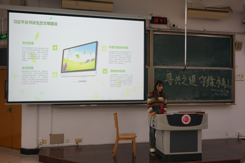 為弘揚生態(tài)文明理念,建設綠色家園,我院于4月24日在W20舉辦“青年講師團”系列講座——“尋共存之道,守綠水青山”。本次講座由我院學生第一黨支部黨員張藝穎、孫詩雨主講,各年級學生代表參加。