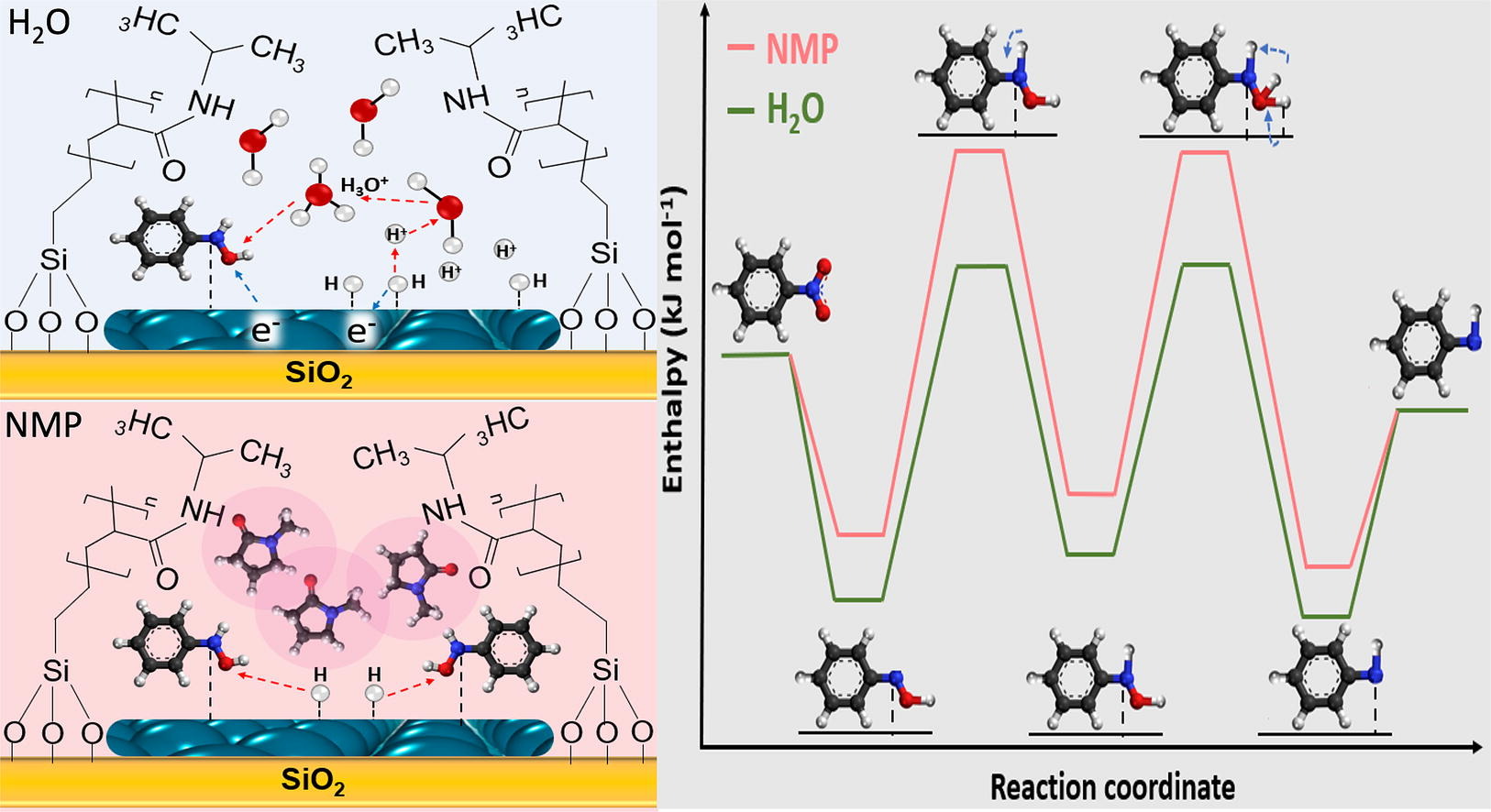 在前期研究聚合物對(duì)催化劑誘導(dǎo)的溶劑化效應(yīng)的基礎(chǔ)上(ACS Catalysis 2023, 13, 10, 6590–6602,Top期刊,封面論文),中文解析見:https://mp.weixin.qq.com/s/6ZsBwg6RtE0h1wOAPhf3_w,以及溶劑特性(質(zhì)子溶劑和非質(zhì)子溶劑)對(duì)于聚合物修飾的催化劑在硝基苯加氫反應(yīng)中,能夠極大地改變表觀活化能、選擇性和反應(yīng)速率的基礎(chǔ)上。(Journal of Catalysis, 2023: 115157) https://doi.org/10.1016/j.jcat.2023.115157