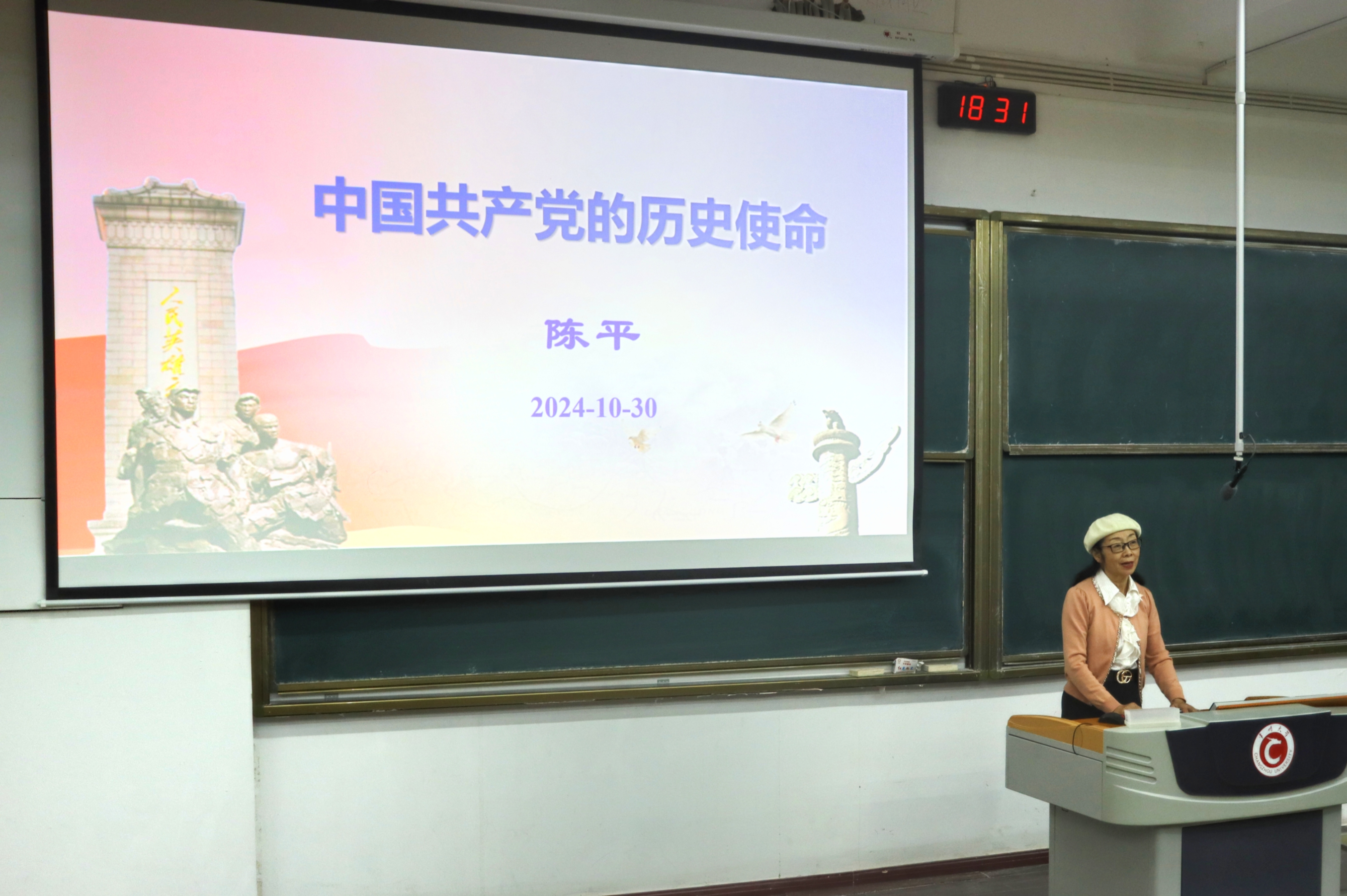 陳平以《中國共產(chǎn)黨的歷史使命》為主題為學(xué)員們授課,從中國共產(chǎn)黨誕生的歷史背景、近代中國社會的現(xiàn)實(shí)要求和中國人的家國情懷等方面闡釋了中國共產(chǎn)黨承擔(dān)歷史使命的必然性;從中國共產(chǎn)黨歷史使命的特征、中國共產(chǎn)黨百年奮斗歷程、新時(shí)代中國共產(chǎn)黨的歷史使命、做黨的使命堅(jiān)定擔(dān)當(dāng)者四個(gè)維度講述了中國共產(chǎn)黨實(shí)現(xiàn)歷史使命的艱巨性。最后,陳平寄語學(xué)員們,要努力奮斗,爭取早日加入中國共產(chǎn)黨,在黨的領(lǐng)導(dǎo)下,承擔(dān)歷史使命,為人民幸福和國家復(fù)興作出貢獻(xiàn)。