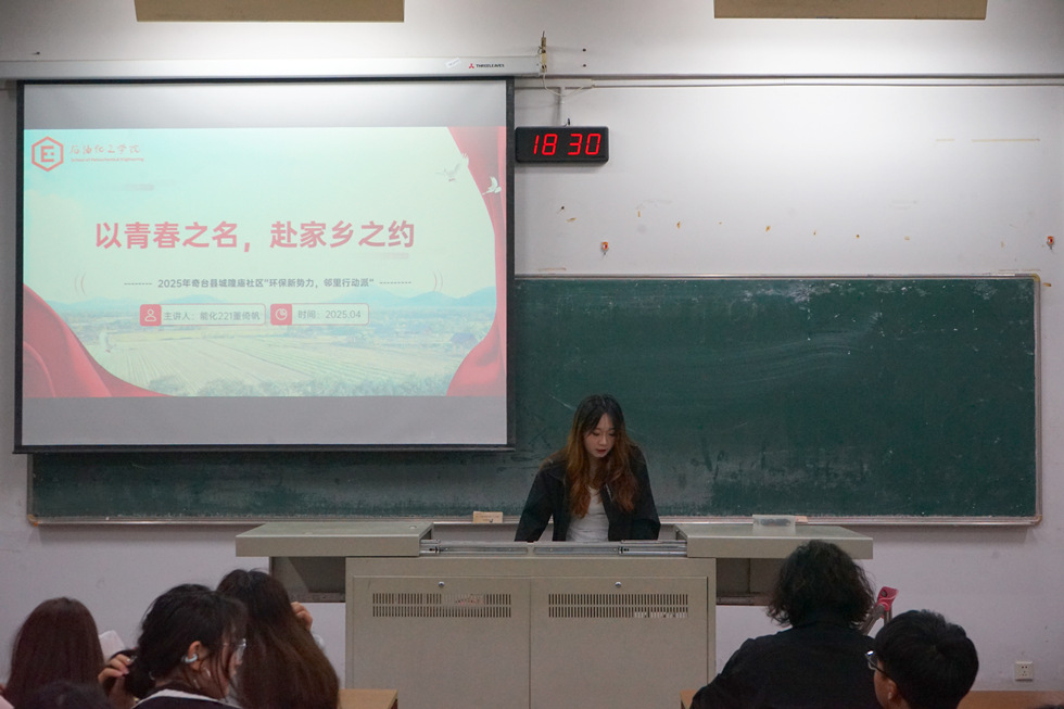 為展示返鄉(xiāng)宣傳成果,體現(xiàn)青春活力,我院于4月22日在W1206教室開展“石化青年說(shuō)”系列講座第三講——以青春之名,赴家鄉(xiāng)之約。本次講座由化工231王雅靜和能化221董倚帆主講,我院學(xué)生代表參加。