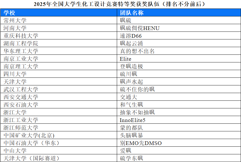 8月11日至8月17日,2025年“天正設(shè)計(jì)杯”第十九屆全國大學(xué)生化工設(shè)計(jì)競(jìng)賽總決賽在天津大學(xué)舉行。常州大學(xué)石油化工學(xué)院砜硫隊(duì)作品《福建凱美特年產(chǎn)1.5萬噸二甲基亞砜項(xiàng)目》(參賽隊(duì)員:常佩源、張皓博、許正梁、薛晴、謝露;指導(dǎo)老師:石劍、馬江權(quán)、謝德華、周滿、黎珊)經(jīng)過江蘇省省賽、華東賽區(qū)選拔賽以及全國總決賽的激烈角逐,斬獲第十九屆全國大學(xué)生化工設(shè)計(jì)競(jìng)賽特等獎(jiǎng)。