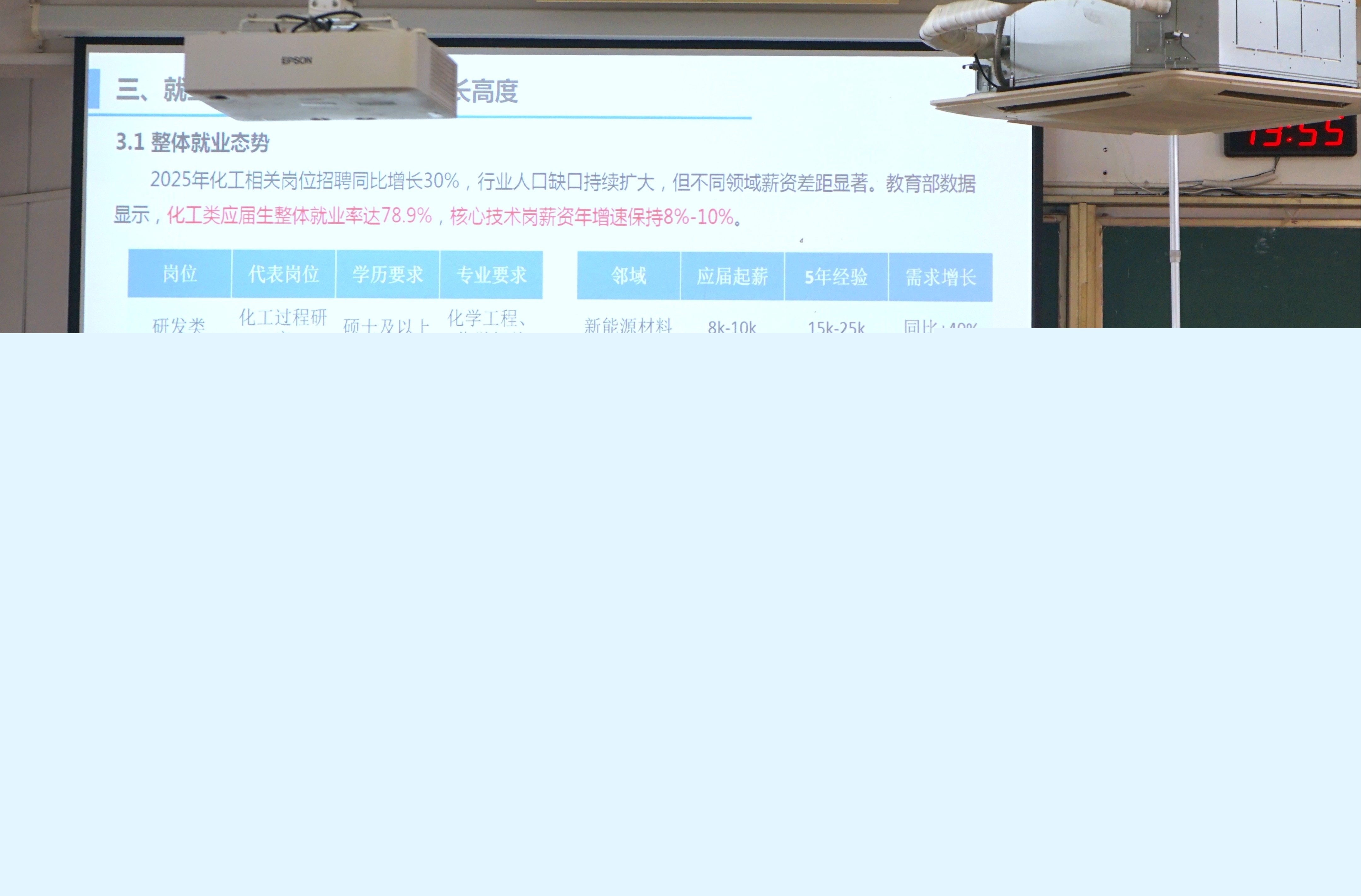 本次講座圍繞石化企業(yè)的招聘要求、行業(yè)發(fā)展現(xiàn)狀、職業(yè)發(fā)展建議等方面展開。三位校友首先為同學(xué)們解析了當(dāng)前石化行業(yè)的招聘趨勢、招聘流程和具體要求,并結(jié)合他們所在企業(yè)和相關(guān)領(lǐng)域的詳實產(chǎn)業(yè)數(shù)據(jù),深入剖析了化工相關(guān)產(chǎn)業(yè)的發(fā)展現(xiàn)狀。此外,校友們結(jié)合他們的求學(xué)和工作經(jīng)歷,給學(xué)弟學(xué)妹們分析了化工相關(guān)專業(yè)的就業(yè)現(xiàn)狀和職業(yè)發(fā)展前景,幫助同學(xué)們厘清發(fā)展路徑、做好職業(yè)規(guī)劃。最后,他們寄語學(xué)弟學(xué)妹們要筑牢專業(yè)知識基礎(chǔ),務(wù)必學(xué)好專業(yè)課程;要拓展視野,鼓勵大家積極參與科研項目、學(xué)科競賽和社會實踐,提升解決復(fù)雜問題的綜合能力;還要錘煉品格,培養(yǎng)吃苦耐勞、勇于擔(dān)當(dāng)?shù)穆殬I(yè)精神,并保持終身學(xué)習(xí)的習(xí)慣,以應(yīng)對行業(yè)的快速變革。他們的寄語情真意切,引發(fā)了在場同學(xué)的深深共鳴。