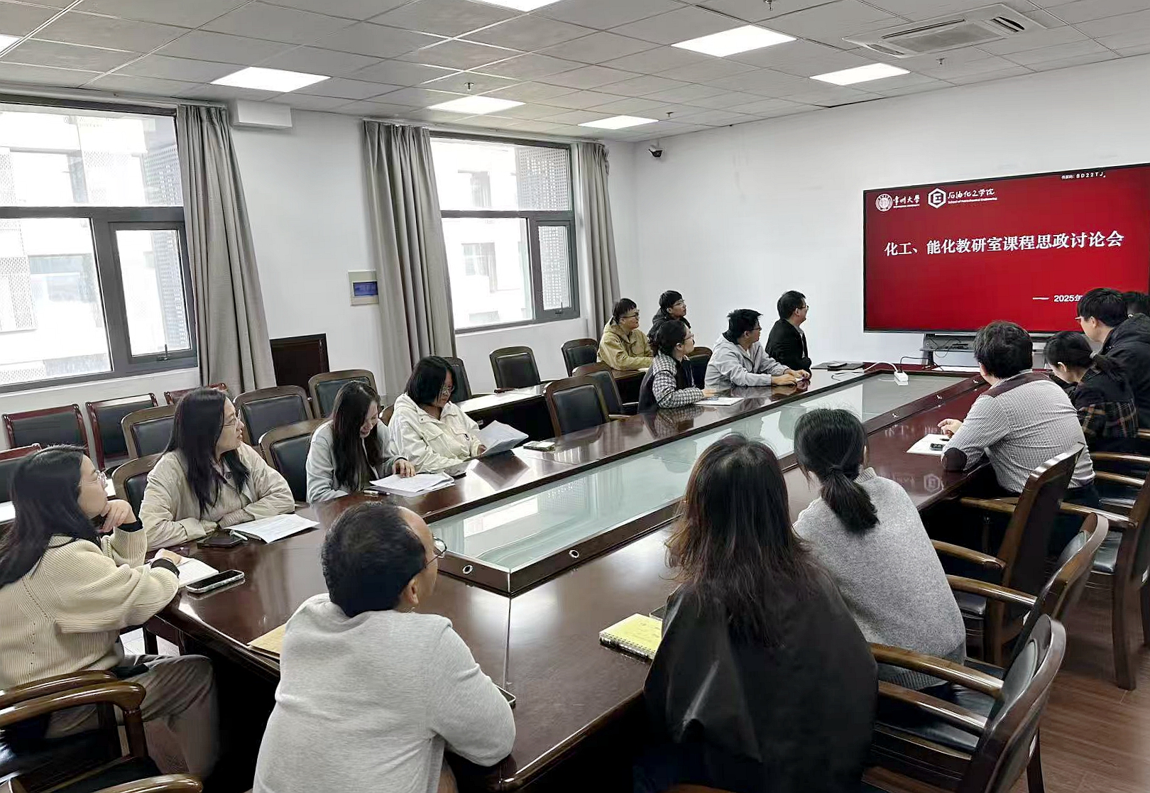 為深入推進課程思政建設(shè),構(gòu)建全員全程全方位育人格局,2025年10月28日,化工、能化教研室組織召開課程思政專題研討會?;そ萄惺摇⒛芑萄惺医處焻⒓訒h。會上,化工教研室主任石劍介紹了本次會議內(nèi)容,圍繞“課程思政的創(chuàng)新路徑與實踐策略”展開交流。