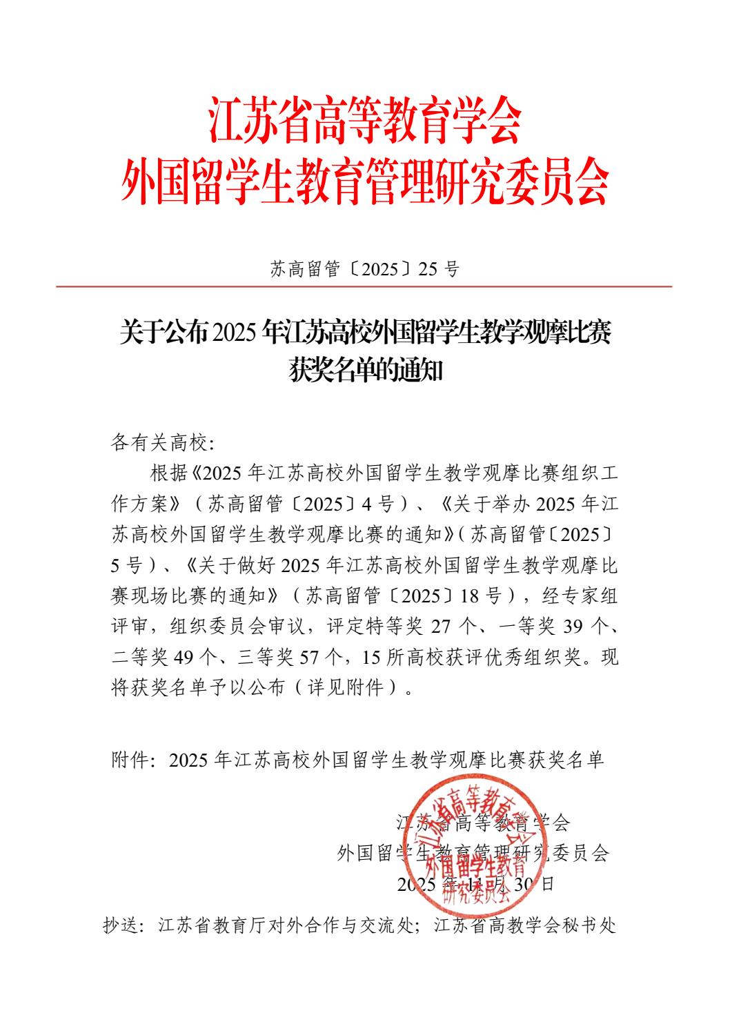 近日,江蘇省高等教育學(xué)會外國留學(xué)生教育管理研究委員會公布了2025年江蘇高校外國留學(xué)生教學(xué)觀摩比賽獲獎名單。經(jīng)過專家組評審和組織委員會審議,我院有機化學(xué)教研室滕巧巧老師榮獲三等獎。