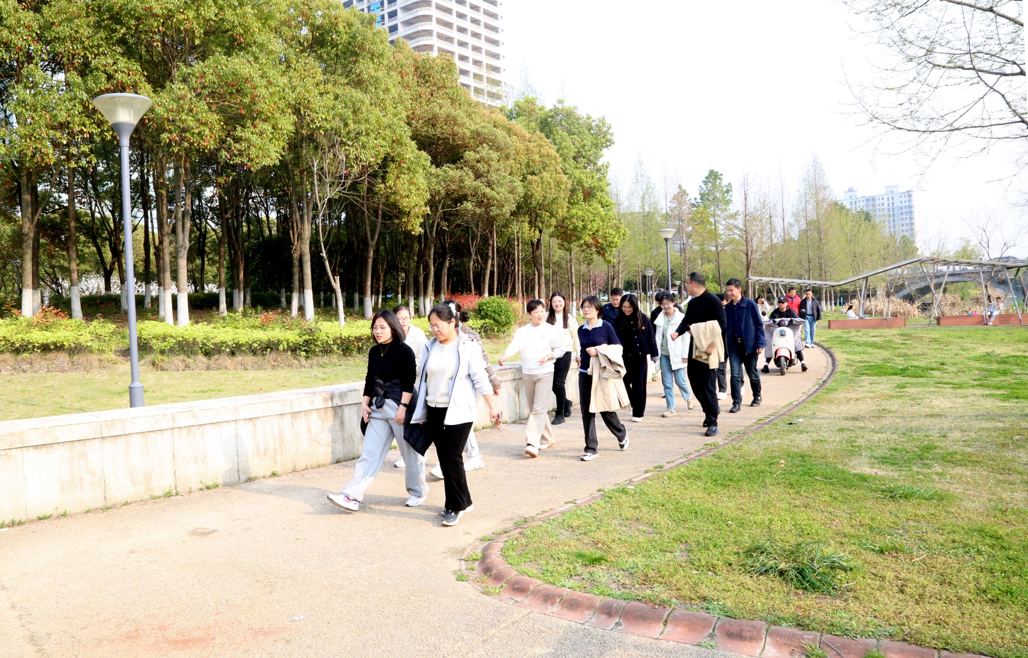 本次活動路線特別選在了學(xué)校附近的風(fēng)景帶,沿途綠意盎然,空氣清新。行進(jìn)過程中,大家三三兩兩,或駐足欣賞春日美景,或交流工作生活心得,一路歡聲笑語不斷,在輕松愉悅的氛圍中放松了身心,舒緩了壓力。