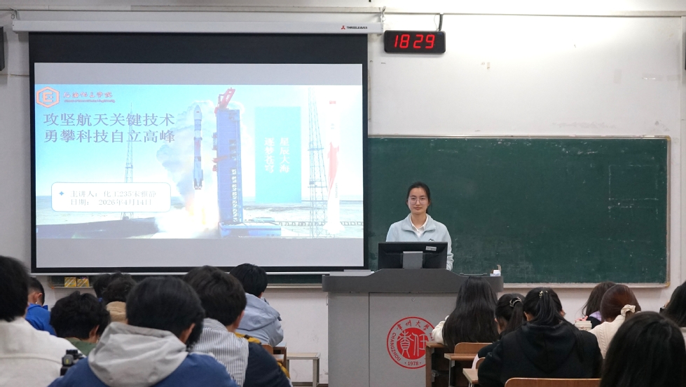 為深入學(xué)習(xí)航天精神,激勵(lì)青年學(xué)子以科技自立自強(qiáng)為己任,我院于4月14日在W1202教室開展了以“航天強(qiáng)國建設(shè)”為主題的“青年講師團(tuán)”系列講座第三講,該講座由學(xué)生第一黨支部黨員化工235宋雅靜和化工236王思懿兩位同學(xué)主講。