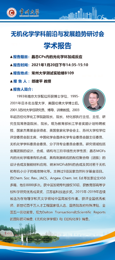 | 【學(xué)術(shù)報(bào)告】1月20日無(wú)機(jī)化學(xué)學(xué)科前沿與發(fā)展趨勢(shì)研討會(huì)學(xué)術(shù)報(bào)告 |