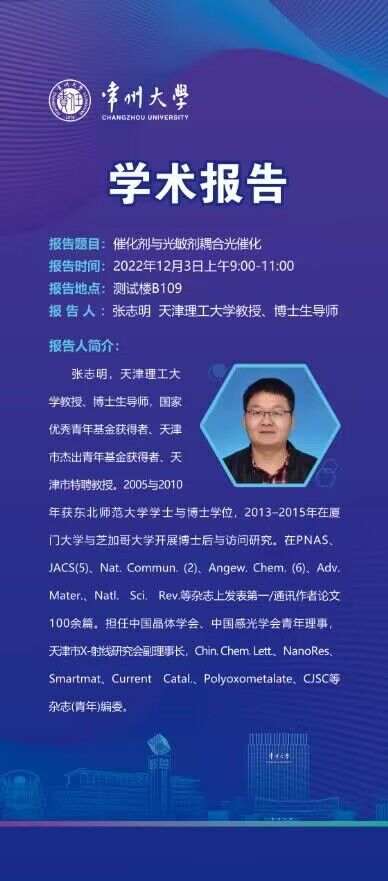 【學術報告】12月3日學術報告——張志明教授——天津理工大學