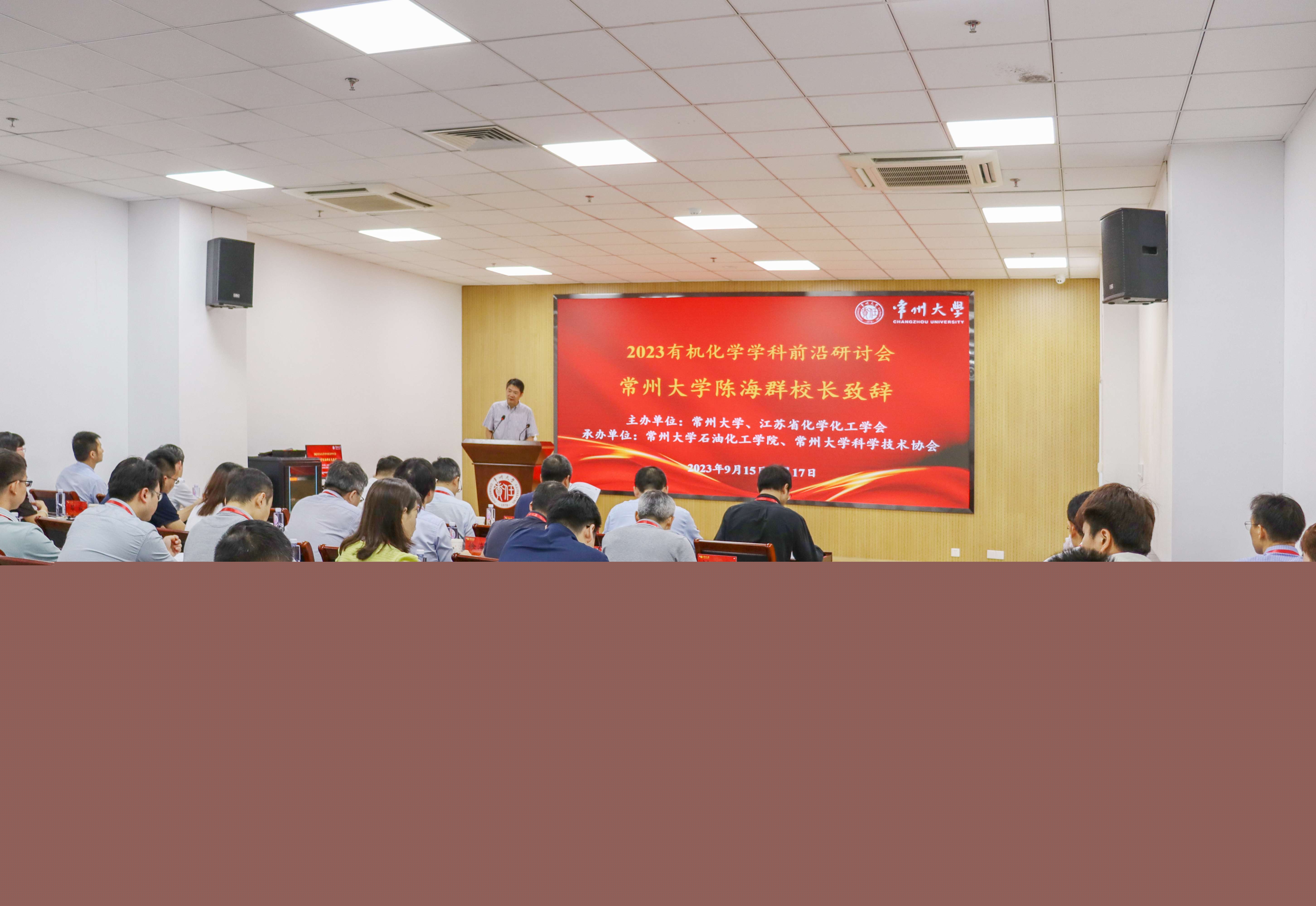 陳海群致歡迎辭,他介紹了常州大學(xué)的發(fā)展概況,并重點(diǎn)介紹了常州大學(xué)有機(jī)化學(xué)學(xué)科的發(fā)展情況和師資隊伍建設(shè),希望與會專家能為常州大學(xué)的有機(jī)化學(xué)學(xué)科建設(shè)發(fā)展提出寶貴意見和建議。