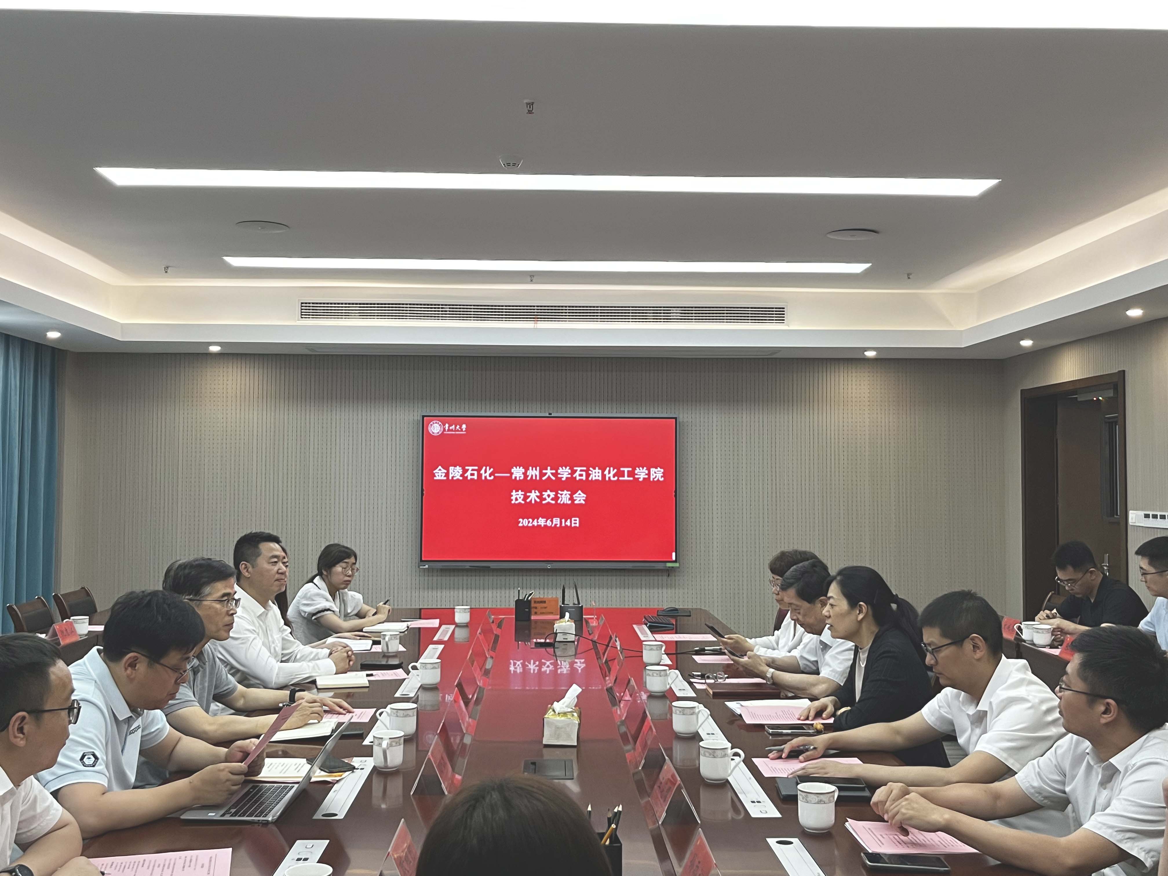 鐘璟歡迎中石化金陵石化公司一行來訪交流,希望以此次交流會為契機,今后雙方能夠深入開展多種形式的交流合作,加速促進學??蒲谐晒D(zhuǎn)化落地。衛(wèi)建軍針對金陵石化公司的技術(shù)需求做了簡要發(fā)布。劉平就學校學院發(fā)展、科研創(chuàng)新成就以及產(chǎn)學研合作等方面作了詳細介紹。