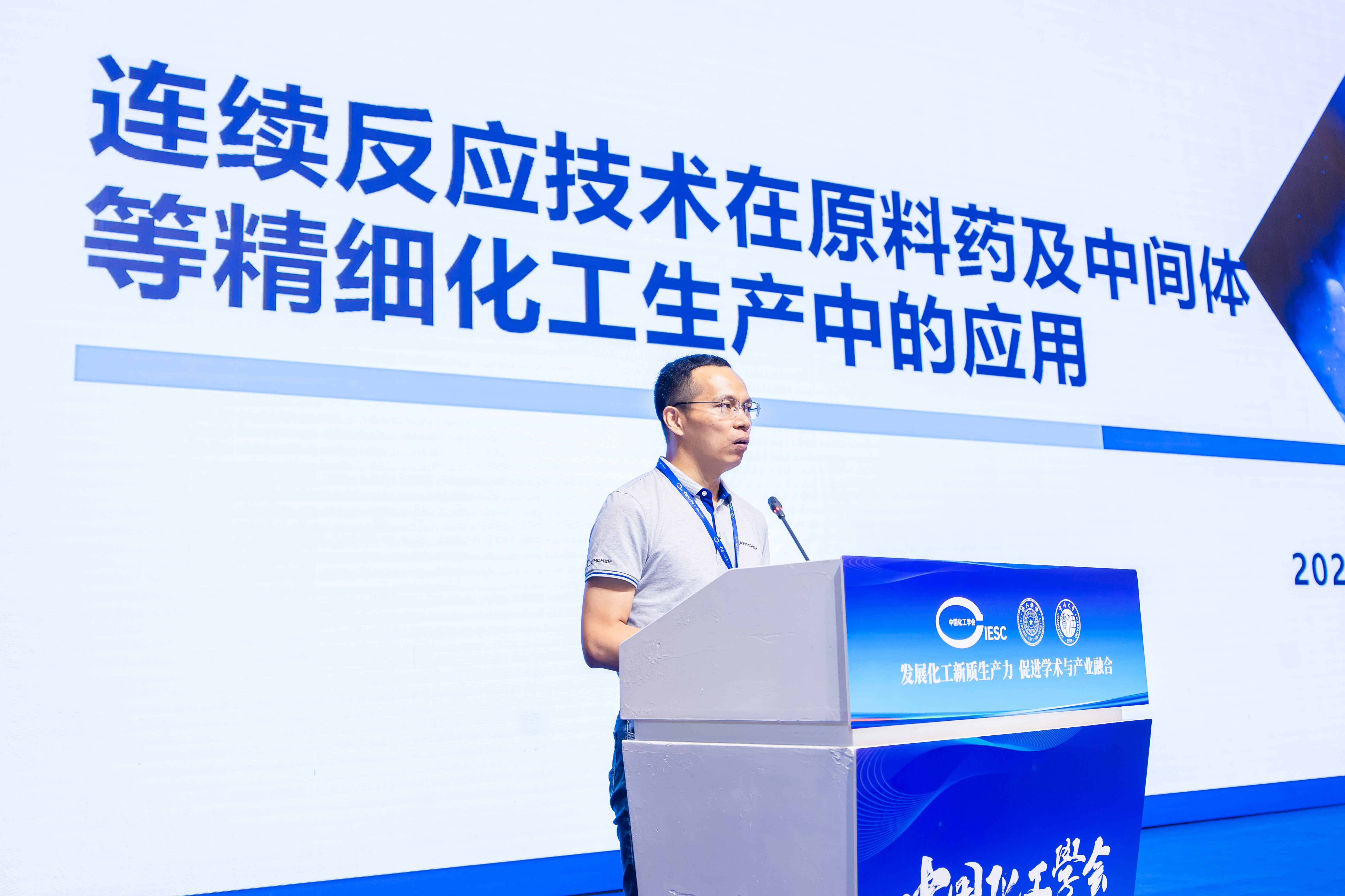 陳海群致辭 學術(shù)特邀報告會環(huán)節(jié),陳芬兒作《Stereocontrolled total synthesis of (+)-biotin through a chiral-auxiliary strategy—From batch to end-to end continuous-flow chemistry》大會報告,彭孝軍作《先進光刻材料進展》大會報告,任其龍作《重要工業(yè)氣體制造過程強化技術(shù)探索》大會報告,蔣軍成作《微化工技術(shù)再造本質(zhì)安全化工過程》大會報告,陳群作《過氧化異丙苯在連續(xù)流反應(yīng)器中的分解行為與苯酚丙酮生產(chǎn)流程重構(gòu)》大會報告,駱廣生作《化工產(chǎn)業(yè)發(fā)展與微化工技術(shù)》大會報告、陶建作《連續(xù)反應(yīng)技術(shù)在原料藥及中間體等精細化工生產(chǎn)中的應(yīng)用》大會報告。 陳芬兒作大會報告 彭孝軍作大會報告
