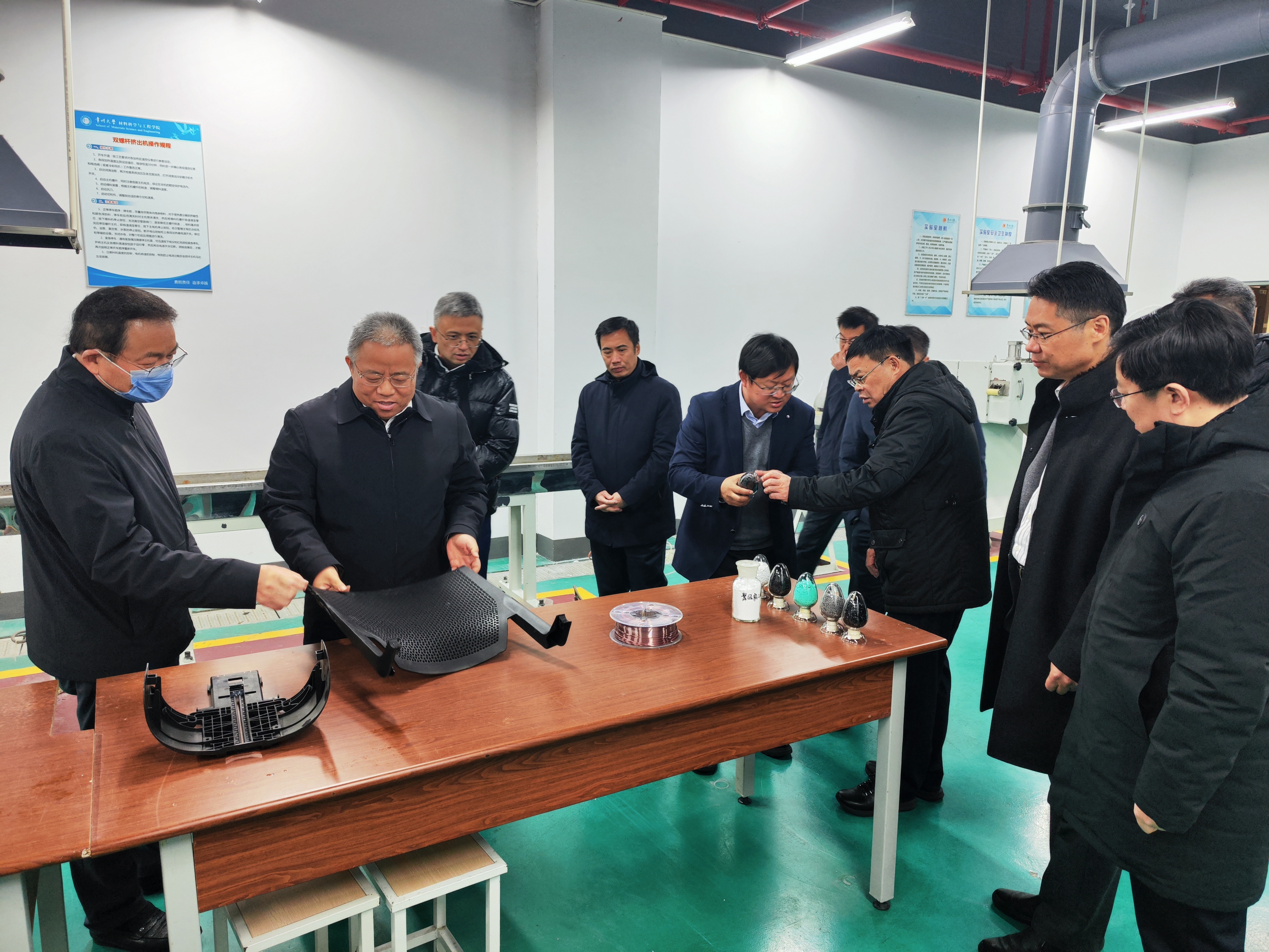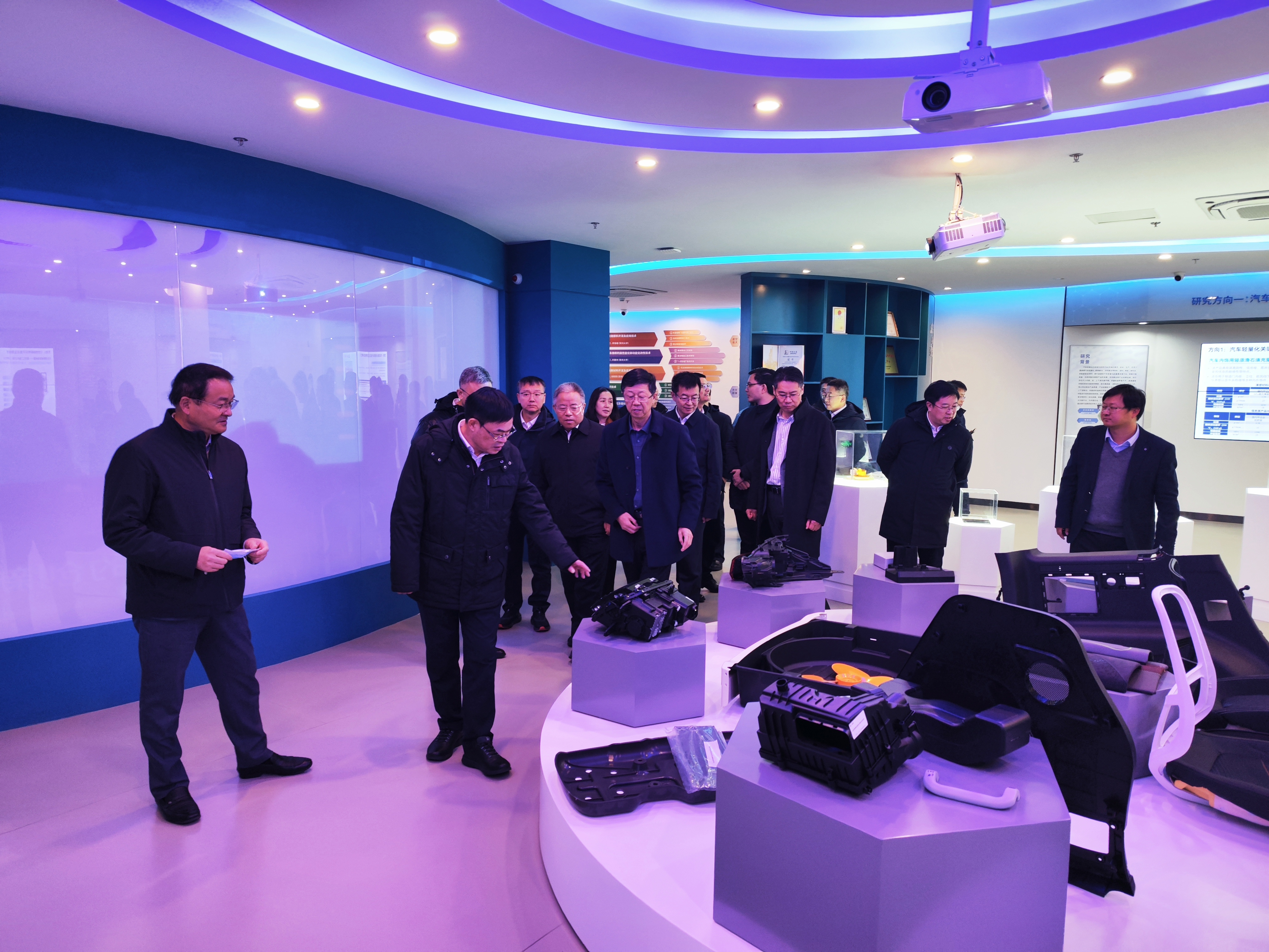 陳海群、陳群陪同李永林一行參觀了高分子成型實(shí)驗(yàn)室、高分子測(cè)試實(shí)驗(yàn)室、聚合物改性聯(lián)合研發(fā)中心主題科技館等相關(guān)科研平臺(tái)。 李永林一行參觀聚合物改性聯(lián)合研發(fā)中心主題科技館 李永林一行參觀高分子成型實(shí)驗(yàn)室