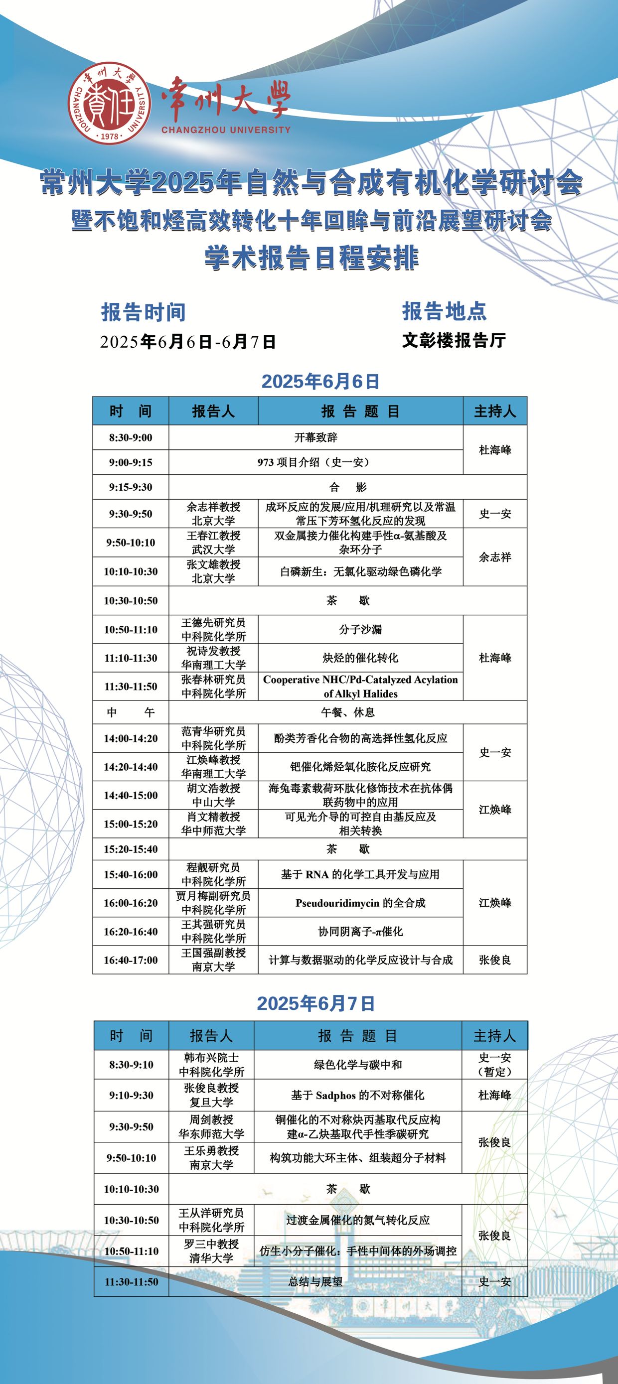 | 6月6日-7日(石化學(xué)院)常州大學(xué)2025年自然與合成有機化學(xué)研討會 |