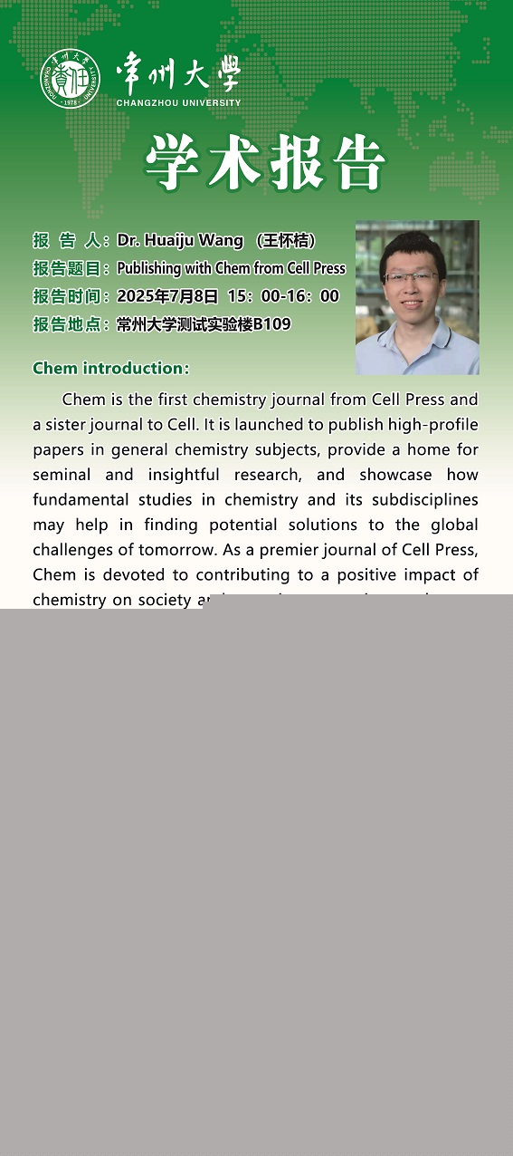 | 【學(xué)術(shù)報告】7月8日功能雜環(huán)研究院學(xué)術(shù)報告——王懷桔 chem雜志編輯 |