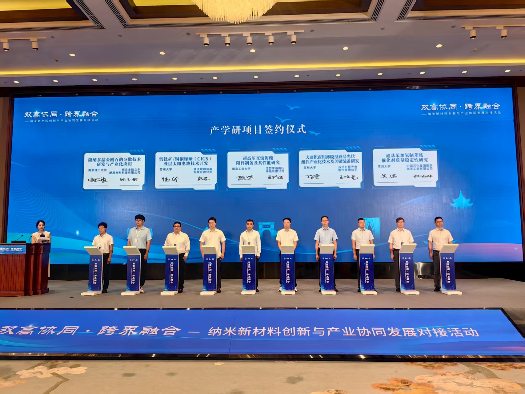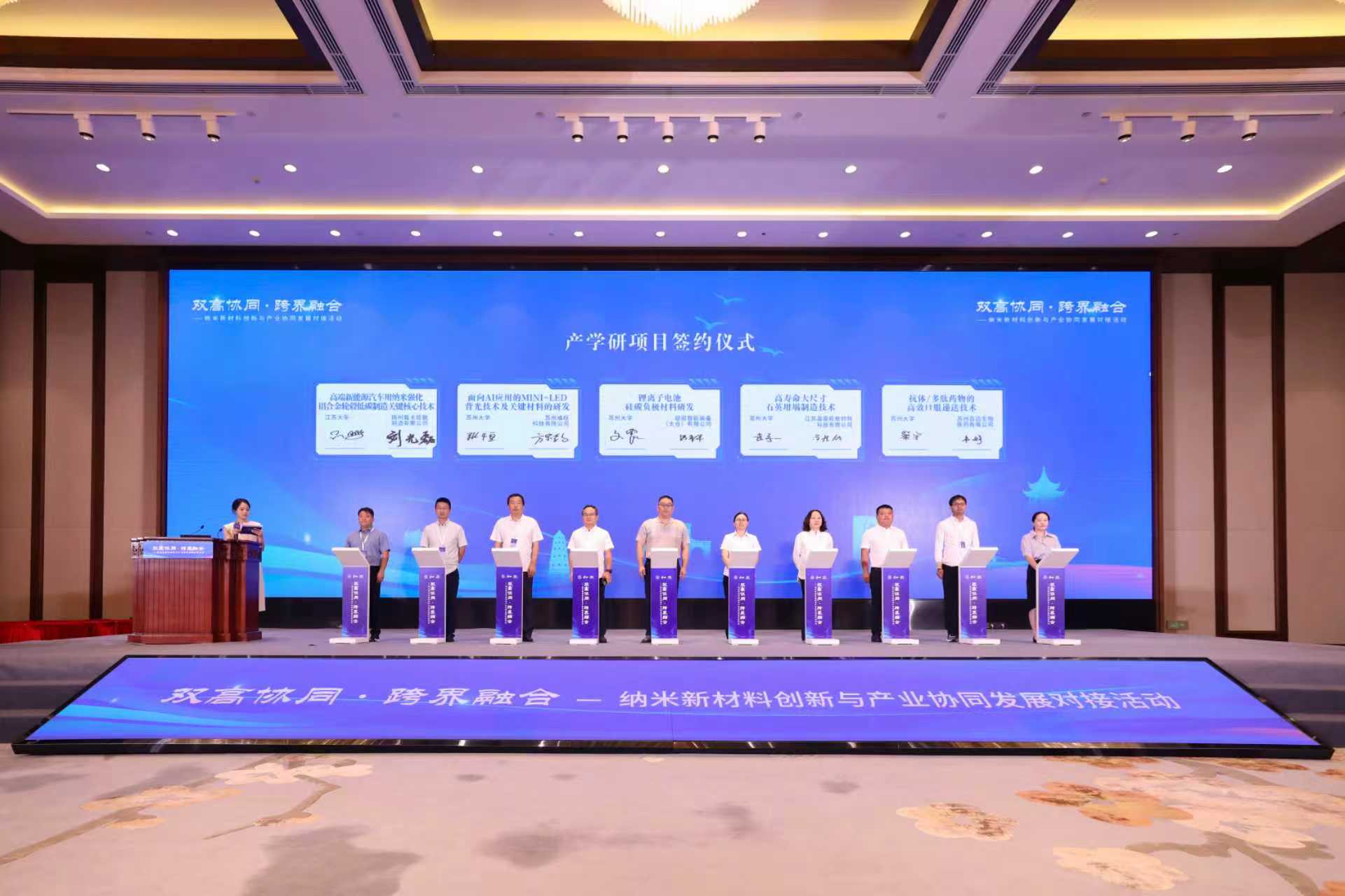 蘇州納米科技協(xié)同創(chuàng)新中心與全國高校先進材料區(qū)域技術轉移轉化中心(江蘇)簽署合作協(xié)議,中國藥科大學等6所高校協(xié)同創(chuàng)新中心與全國高校生物醫(yī)藥區(qū)域技術轉移轉化中心(江蘇蘇州)達成共建共識,10個校企合作項目同步簽約,其中我校光伏科學與工程協(xié)同創(chuàng)新中心、先進催化與綠色制造協(xié)同創(chuàng)新中心分別與江蘇晶盛旺新材料科技有限公司、中石化南京化工研究院有限公司簽約合作項目。常州大學等江蘇高校納米新材料領域多項重大科技成果同步發(fā)布,涵蓋光伏、生物醫(yī)藥、環(huán)境治理、半導體材料等關鍵領域。