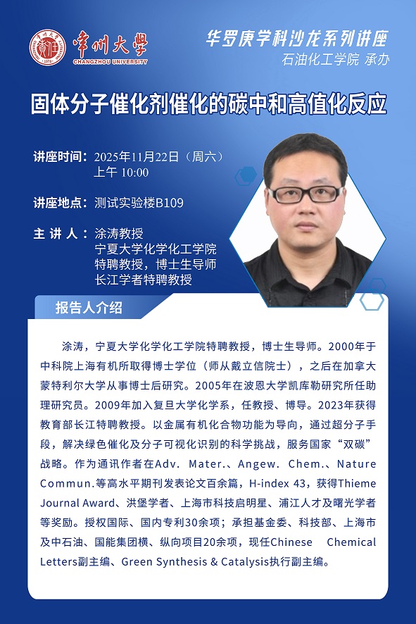 | 【學(xué)術(shù)報告】11月22日學(xué)術(shù)報告——賈義霞教授 天津理工大學(xué) 涂濤教授 寧夏大學(xué) |