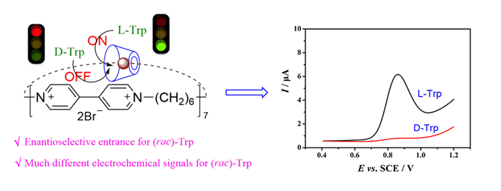 近日,青年教師吳大同與孔泳教授合作報道了基于β-環(huán)糊精衍生的索烴分子的制備,同時作為功能性分子實現(xiàn)基于電化學(xué)的手性識別研究。這是吳大同博士進(jìn)入常州大學(xué)工作以來在IF > 5.0期刊上發(fā)表的第四篇論文。該工作得到了國家自然科學(xué)基金(21804013)和江蘇省自然科學(xué)基金(BK20171194)的資助。